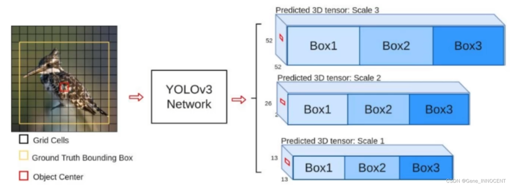 - 为了检测不同大小的物体,设计了 3 个 scale
