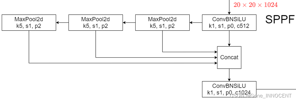 - 将 SPP (Spatial Pyramid Pooling) 改为 SPPF,将并行的池化改为串行池化,通过实验证明性能得到提升;另外该结构主要目的是将不同尺度的池化结果融合在一起