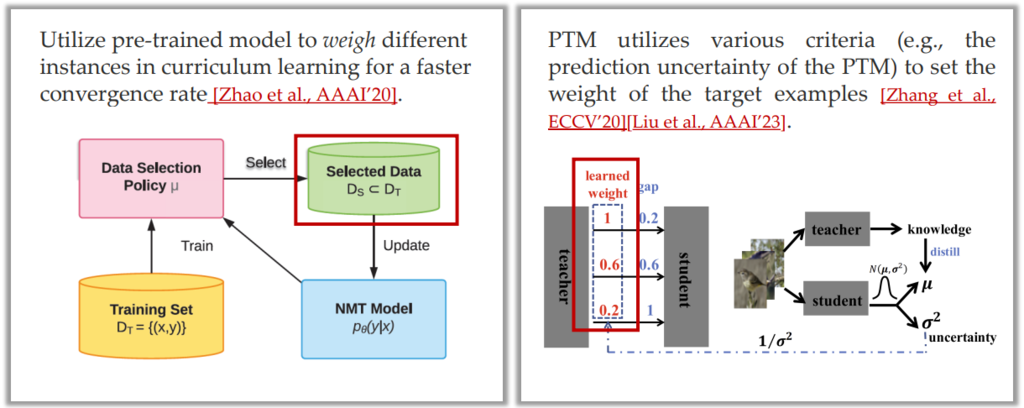 Data Selection [Zhang et al., ECCV’20] [Liu et al., AAAI’23]:使用 PTM 对样本的置信度,挑选数据或对数据加权。