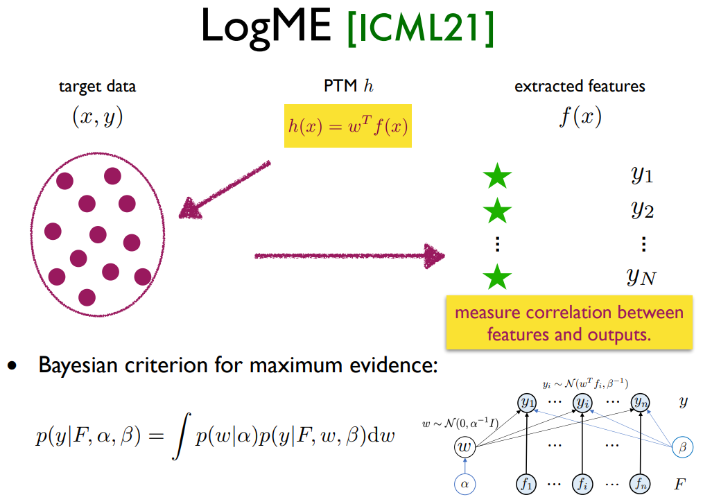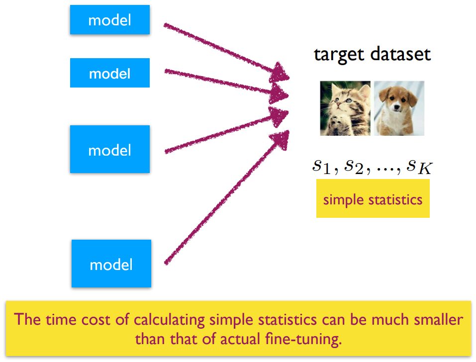 首先是第一类 fitness 方法,其根据模型在目标数据上的输出,判断模型在目标数据上的 finetune 性能(每个模型需要推理一遍数据):