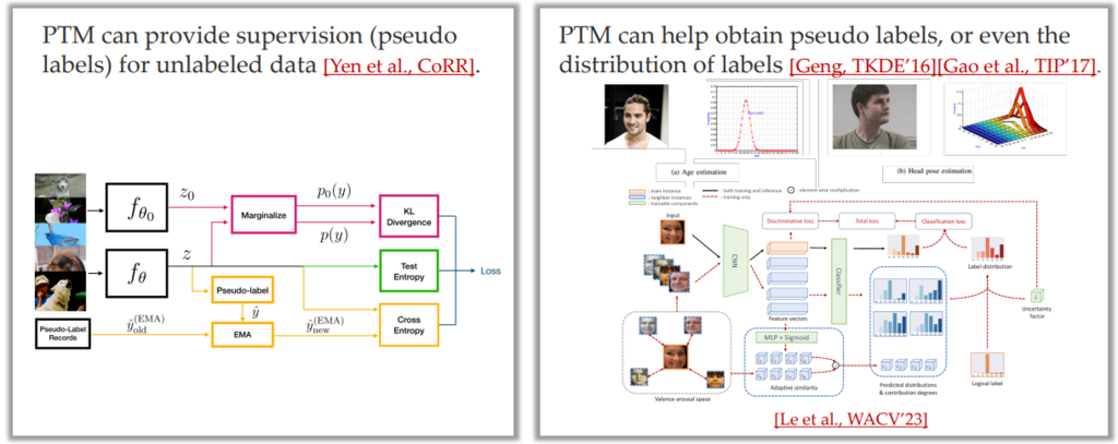 PTM for Richer Labels:使用 PTM 为无标记数据打 pseudo label;使用 PTM 获取 label 的分布 [Le et al., WACV’23]。