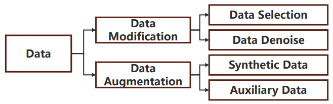 在数据层面,PTM 可以为目标任务生成更丰富的数据,也可以过滤一些噪声数据,具体分类如下: