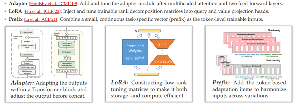 BitFit [Ben-Zaken et al., ACL’22] : tune (a subset of) bias-terms of the PTM.