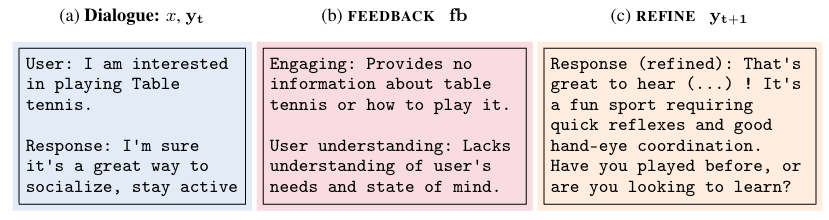再将 $x,\mathbf{y}_0,\text{fb}_0$ 都输入给模型,得到模型改进后的回答 $\mathbf{y}_1$;